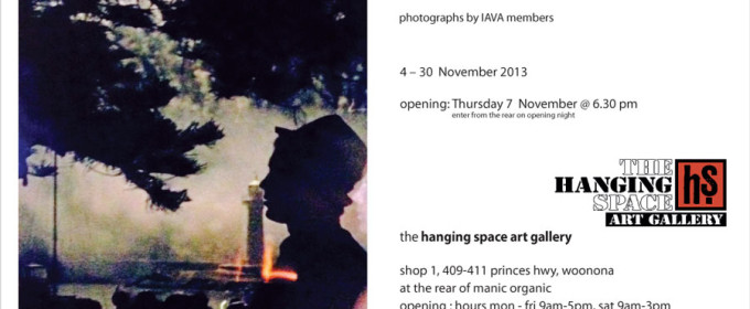 IAVAtography : exhibition of photography by IAVA members. @ The Hanging Space Art Gallery, Shop 1 , 409-411 Princes Highway, Woonona, NSW 4 – 30 November 2013 opening: 7 November @ ...