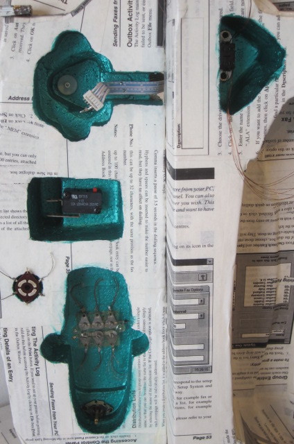 The Voids in the packaging of electronic devices filled with the details of the components.